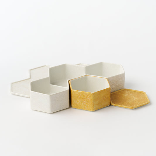 Hexagonal Triple Box - Awagesho Mica Silver & Single Box - Gold